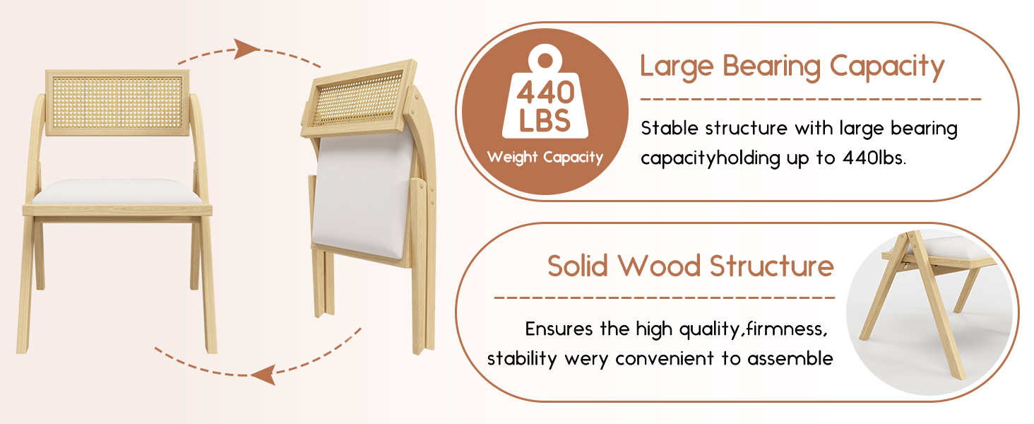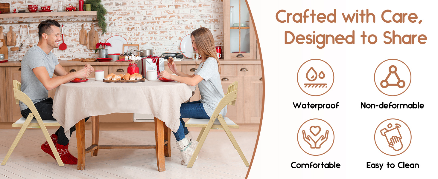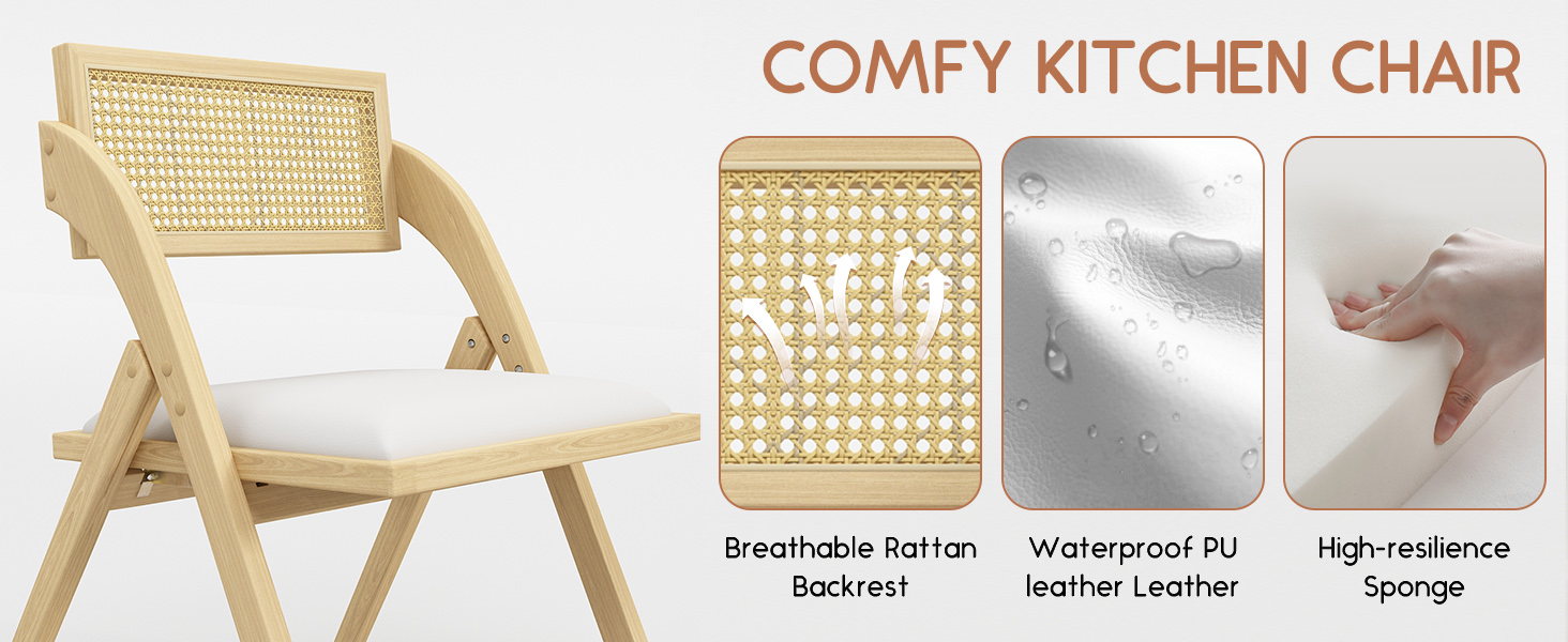 Lavimiya’s premium folding dining chairs feature sturdy rubber wood construction with padded, skin-friendly PU leather seats and high-density sponge for comfort. They fold compactly to save space, are built to last without deforming, and come with non-slip pads to protect floors. Designed for versatile use in kitchens, dining rooms, restaurants, or living spaces, these chairs require no assembly and are ready to enhance your dining experience while blending seamlessly into any decor. Note: the backrest can spin for added comfort; contact us if needed for assistance.