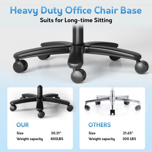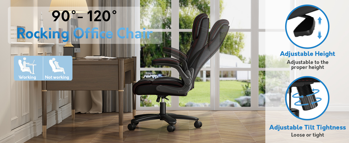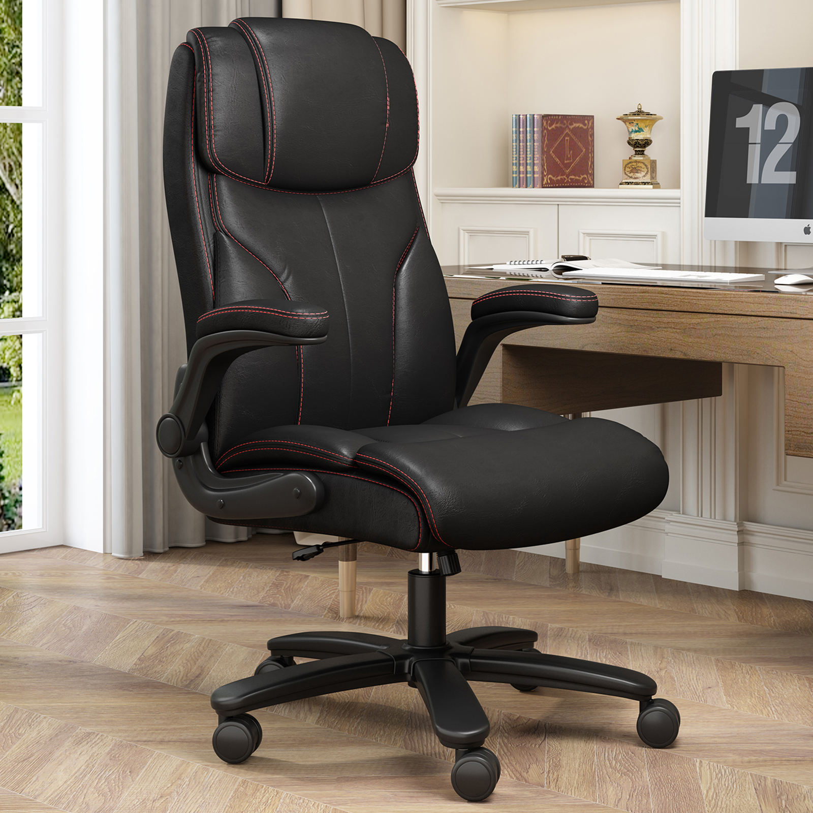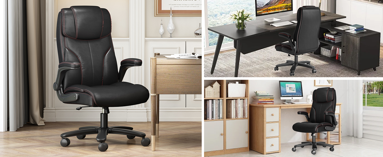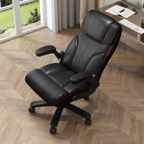 Features thick headrest and body-contouring backrest for enhanced comfort, along with a supportive seat cushion. Versatile Computer Chair: Adjustable height and flexible backrest from 90 to 120 degrees for optimal relaxation. Heavy Duty Executive Desk Chair: Sturdy metal base supports up to 400 pounds, with smooth-rolling wheels that won’t damage floors. Elegant Modern Design: Unique stitching and high-quality PU leather for a stylish yet skin-friendly experience. After Service: Assembles in 15-30 minutes and offers excellent customer support for plus-size desk chairs.